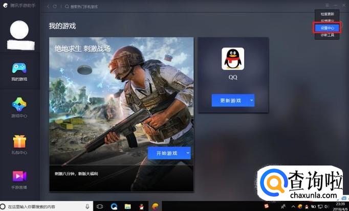 在电脑上打开腾讯手游助手,点击右上角的“设置”按钮