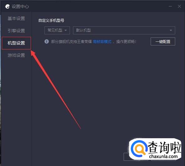 然后点击进入设置中心的“机型设置”