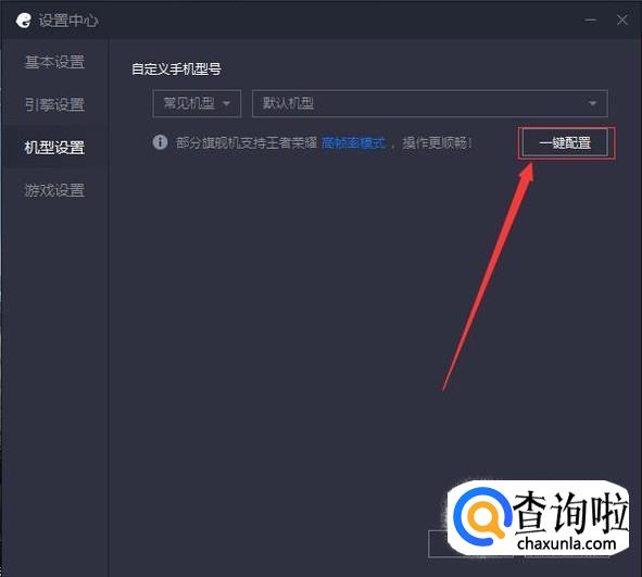 选择合适的机型,如果不了解点击“一键配置”即可