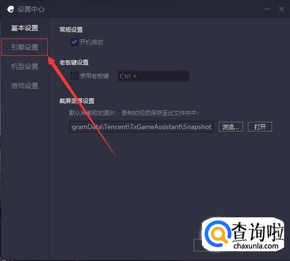 在设置中心中,点击左侧“引擎设置”