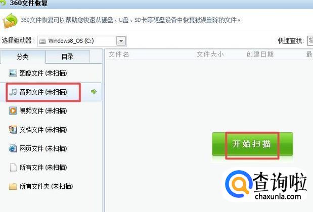 弹出的界面,我们点击选择我们删除文件的类型,之后我们点击开始扫描;