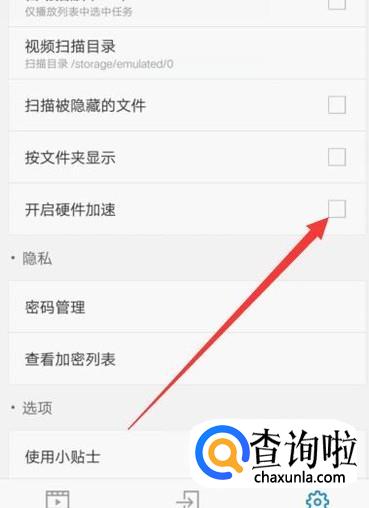 进入之后,在设置界面,将“开启加速硬件”打开,如图所示。