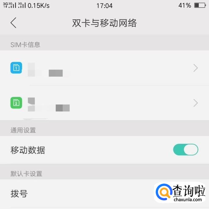 点击这个选项之后,我们可以看到两张卡,因为OPPO手机大多是可以插两张手机卡的,而小编插了两张卡。