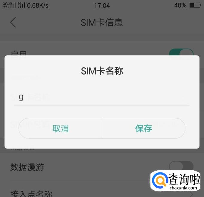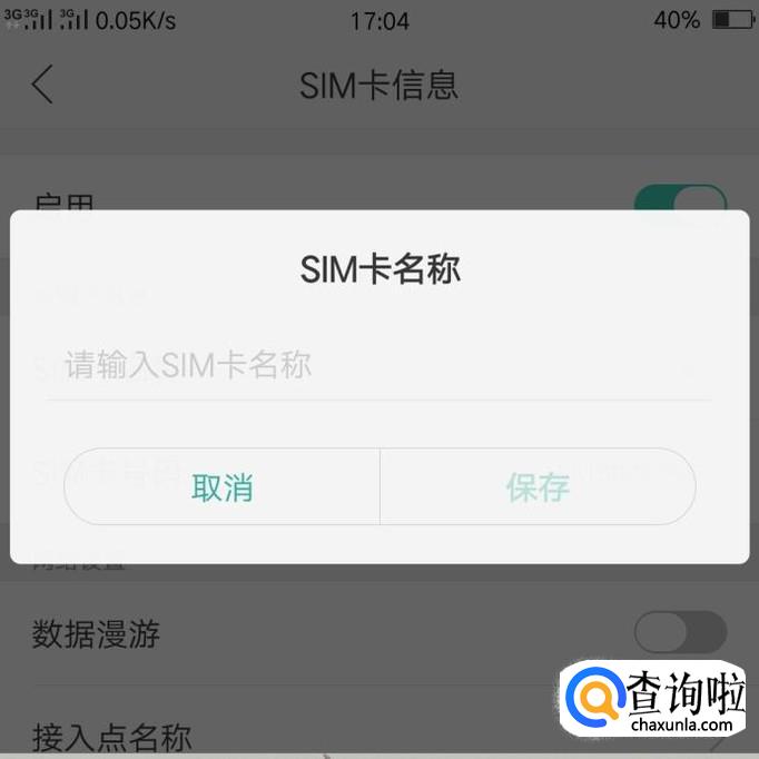 点击一张要改运营商名称的卡,点击之后就进入了改名称界面,输入要改的名字,然后点击保存就OK了。