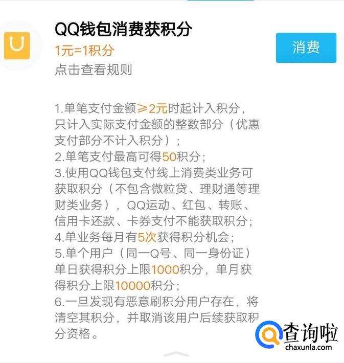 首先,最简单的方法就是QQ钱包消费来领积分,一般的话是一块钱一个积分。