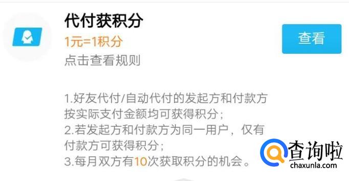 最后就是代付领积分,或许有的人购物或者是其他的什么让你帮忙代付,当你付了款过后你也可以获得积分。