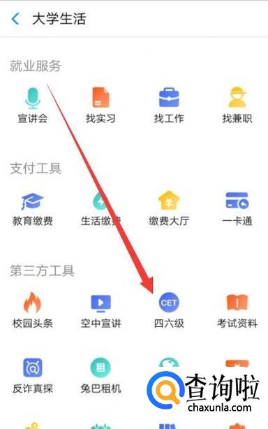 进入之后,找到“四六级”,点击并进入,如图所示。