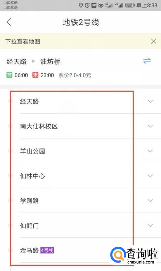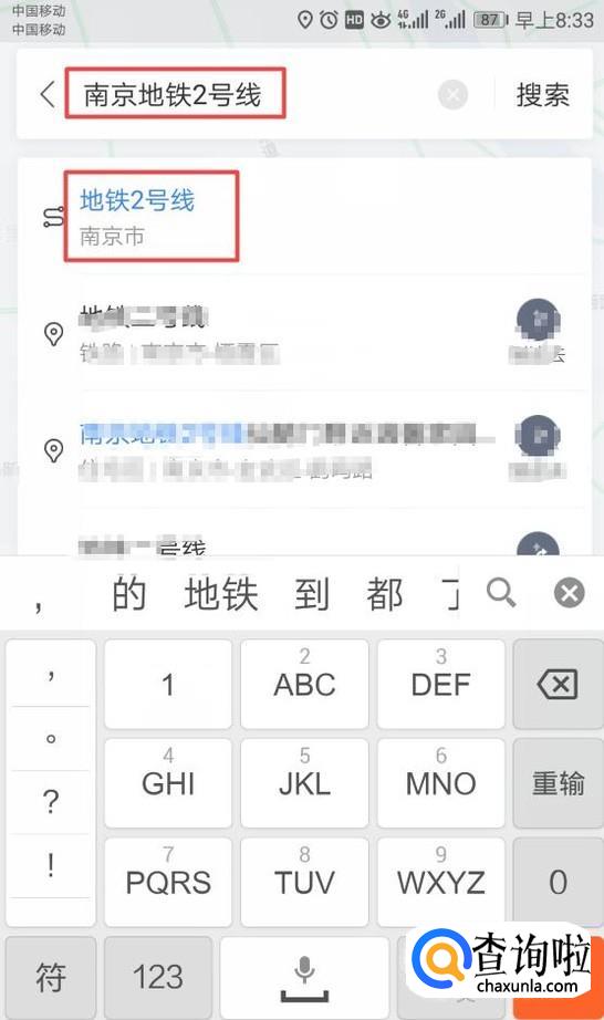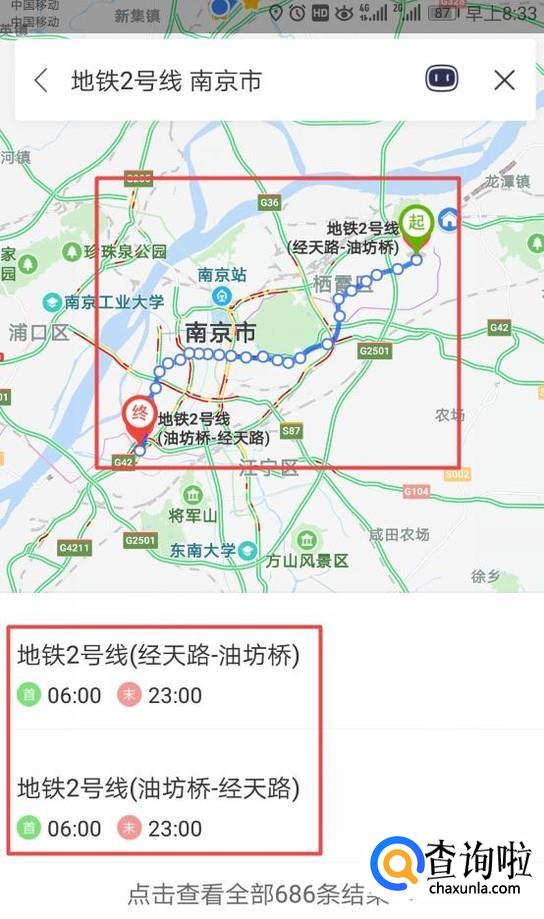 然后我们输入一条地铁线,此处我们输入南京地铁2号线;