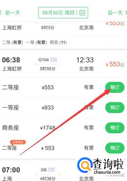 查票完毕之后,选择一个适合你的,然后点击预订。如下图