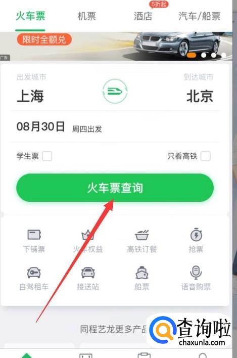 进入之后选择你要的火车航程,如下图,然后开始查票。