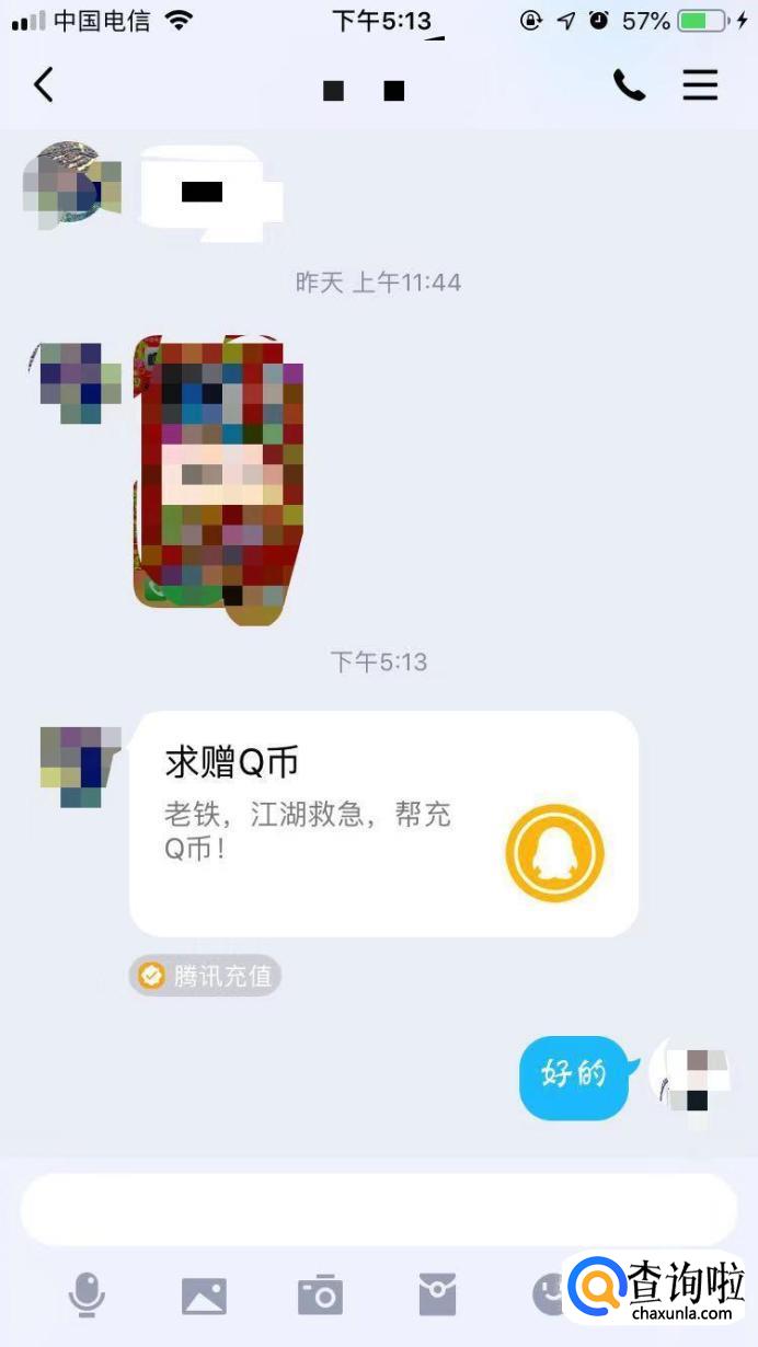 给好友转Q币,首先得要您的好友来向你索要Q币。如果好友已经向你索要了Q币,收到消息以后,你打开QQ号码,会收到一个消息,是A账号向自己索要Q币的一个消息,点击该消息,进行相关操作即可。