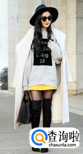 长靴搭配毛呢大衣,内搭长款毛衣或者比大衣短的裙子,再加上肉色打底袜。这是冬季长靴最普遍的搭配方法,不仅保暖还很时尚。