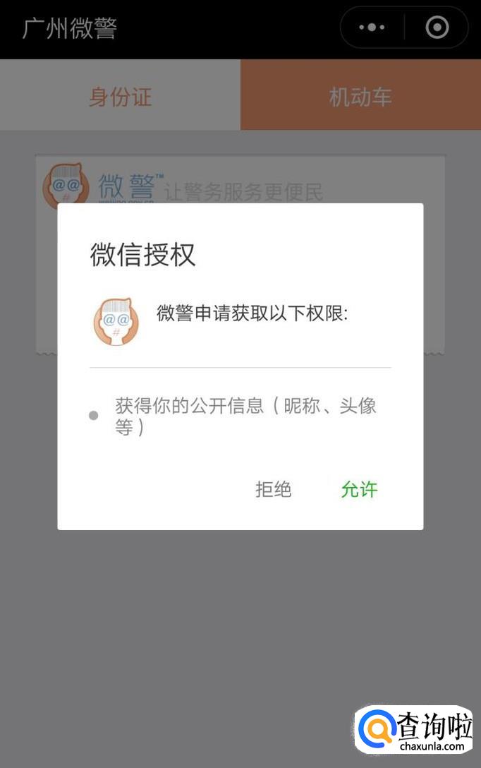 然后就会登录这个微警公众号,允许登录,如下图。