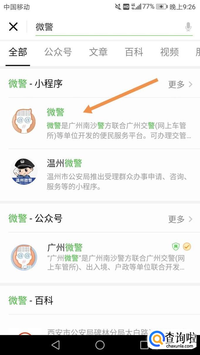 接着就搜索微警,然后会出来两个微警,这两个微警的地点一个在广州,一个在温州,现在只有这两个地点开通试用点,小编这里给大家示范广州的,如下图。