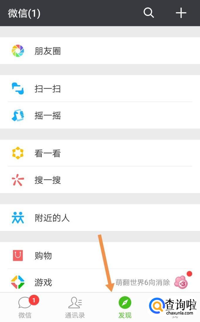 首先打开微信,然后点击发现,在“发现”里点击搜一搜,如下图。