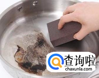 加热后,如果糊的地方比较厚,先用木铲将糊的铲掉一些,再用百洁布用力擦洗干净,如果湖的地方比较薄,用百洁布用力擦就能擦干净了。
