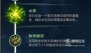 选择余震意味着你在团战时会获得巨额的双抗帮助你存活,骸骨镀层的选择是因为瑞雯前期太脆了