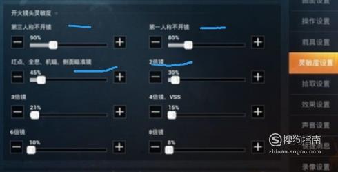 然后接下来就要调镜头的灵敏度了,同样镜头的灵敏度也不要设置的太高,因为设置的太高了,同样也会飘。开始镜头的灵敏度设置在50以内,返回在战场上去试一下,如果发现还是有点飘或者觉得有点迟钝,我们就来重新调一下,如果有点飘的话是50以下调,如果有点迟钝的话就往50以上调。