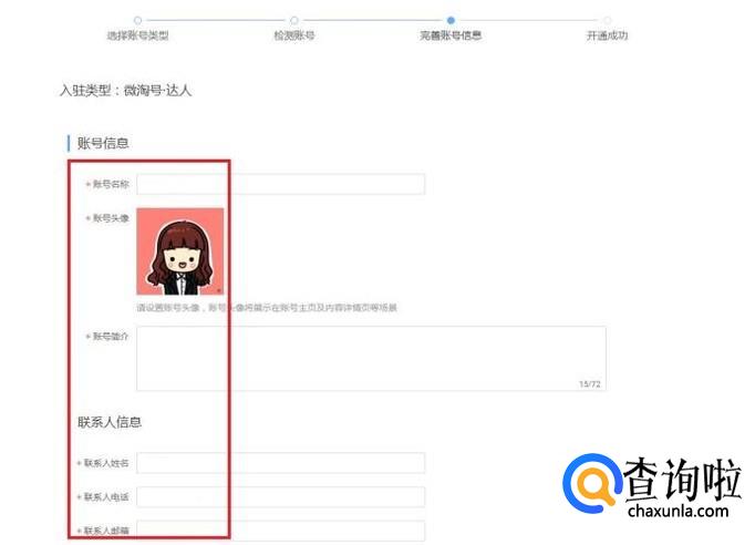 账号选择完毕后,开始按要求填写账号信息,星号代表必须填写,填写完毕后,点击开通即可,如图所示