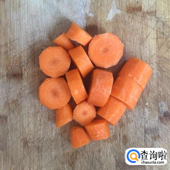 接着把胡萝卜去皮切成段,倒入锅中煮20分钟。