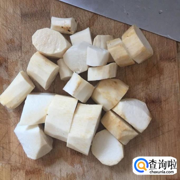 首先把小薯去皮切成段,如下图所示。