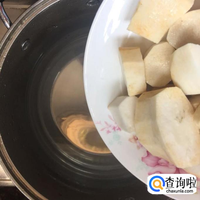 锅中放入适量的清水,待水烧开,倒入小薯煮15分钟。