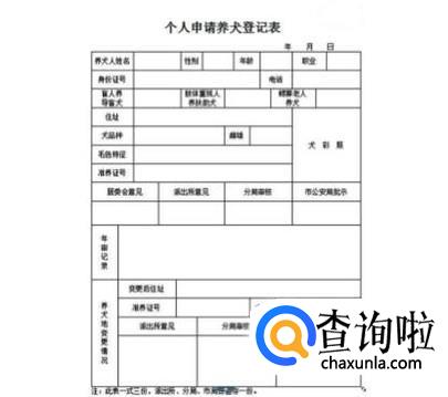 在办理点工作人员会对你的狗狗进行检查,并拍照,检查合格的,会给你一张《个人养犬登记表》来填写。