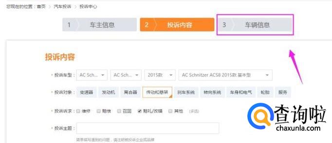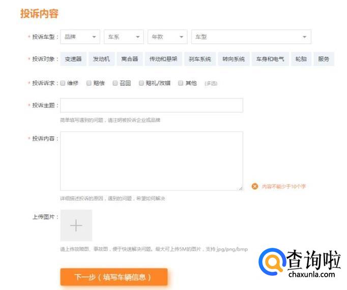 接着我们输入我们的投诉信息,接着上传我们的车辆信息,就可以投诉了,如图所示。