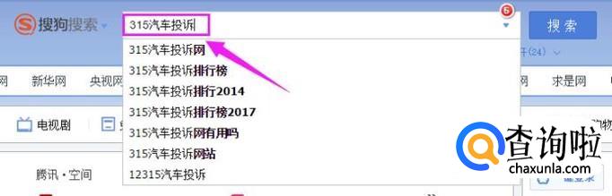 打开浏览器,我们在浏览器上输入“315汽车投诉”,如图所示。