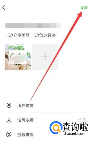 回到自己发动态的页面,将图片放上去,然后将文字粘贴到动态页面,点击“发表”即可。