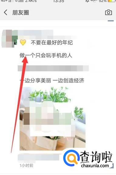 进入之后,找到想要转发的朋友圈,点击并进入,如图所示。