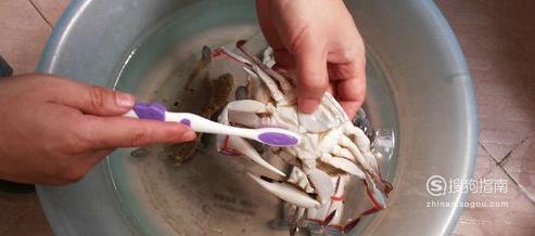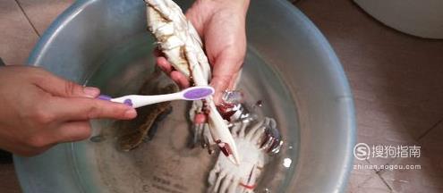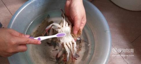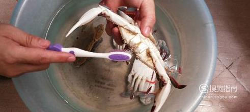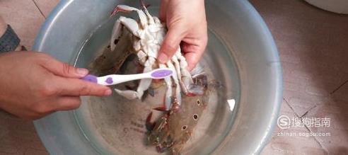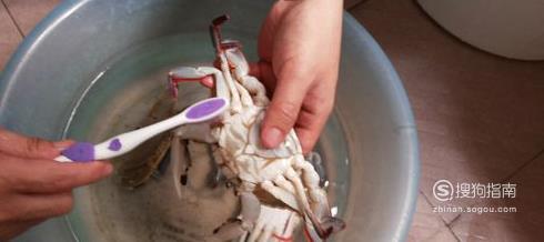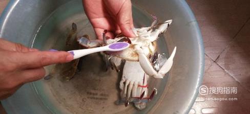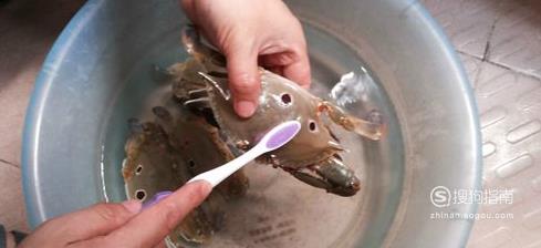 买回的螃蟹最好先放在装水的盆里养两小时让其吐沙,然后用牙刷先刷螃蟹背壳。