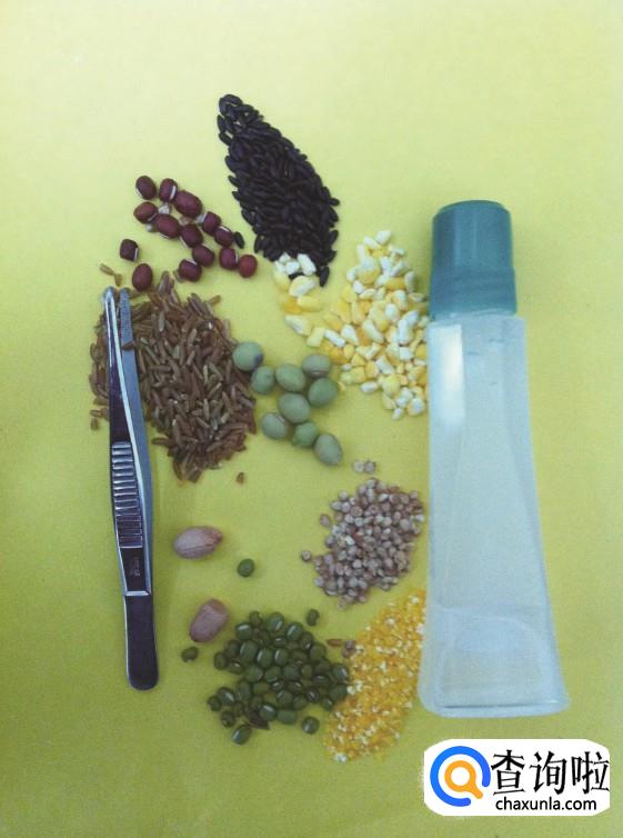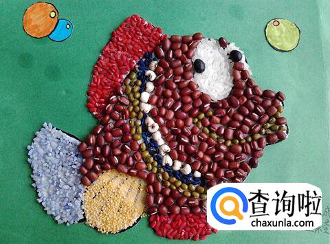 通过使用红豆,绿豆,大米等制作鱼,如图所示。