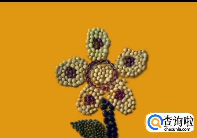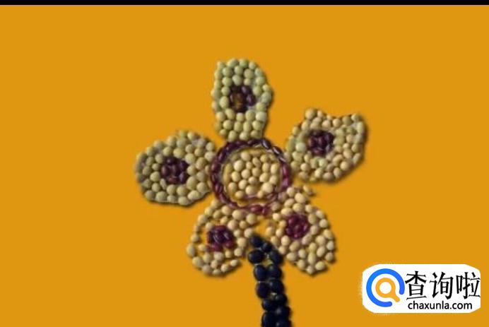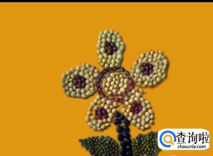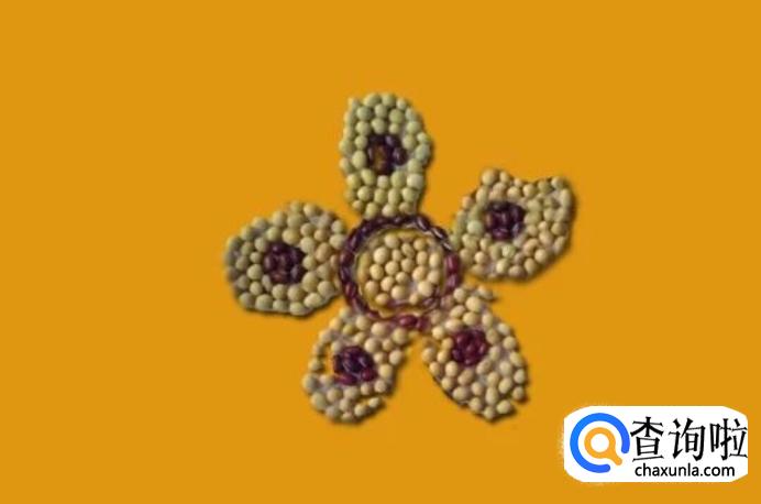 在花心的旁边摆上黄豆作为花瓣,如图所示。