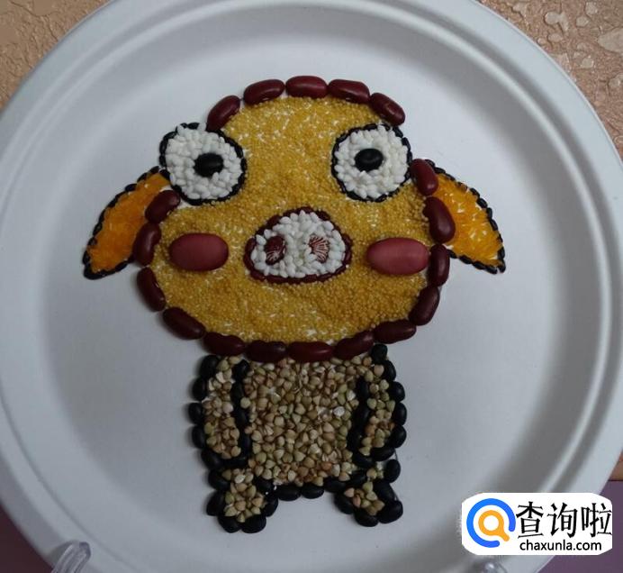 通过红豆,大米,黑豆等制作小猪。