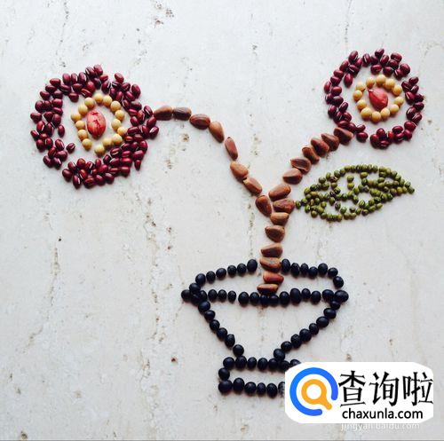 通过使用红豆,绿豆,黑豆等制作花和花盆,如图所示。