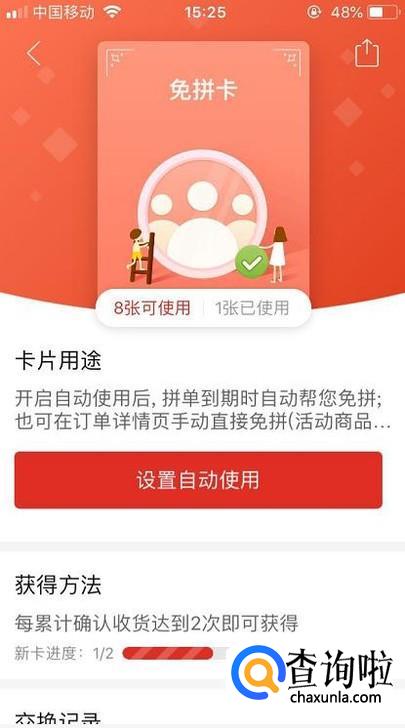 首先我们要先在集卡收藏馆里面确认一下账号有免拼卡。
