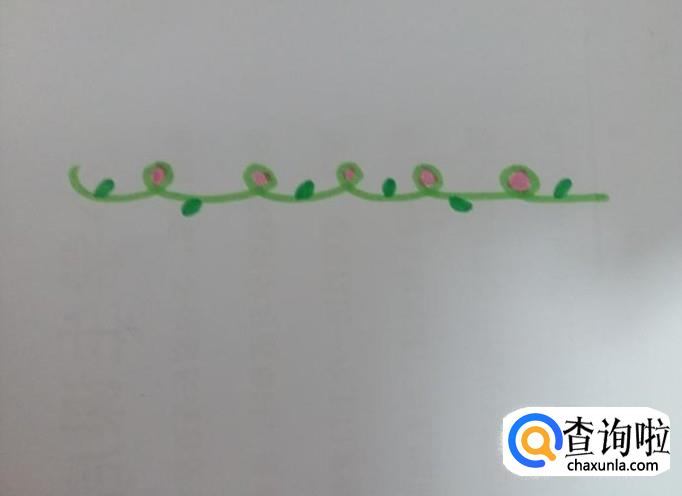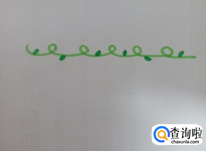 用深绿色的水彩笔在藤蔓上画出小叶子。
