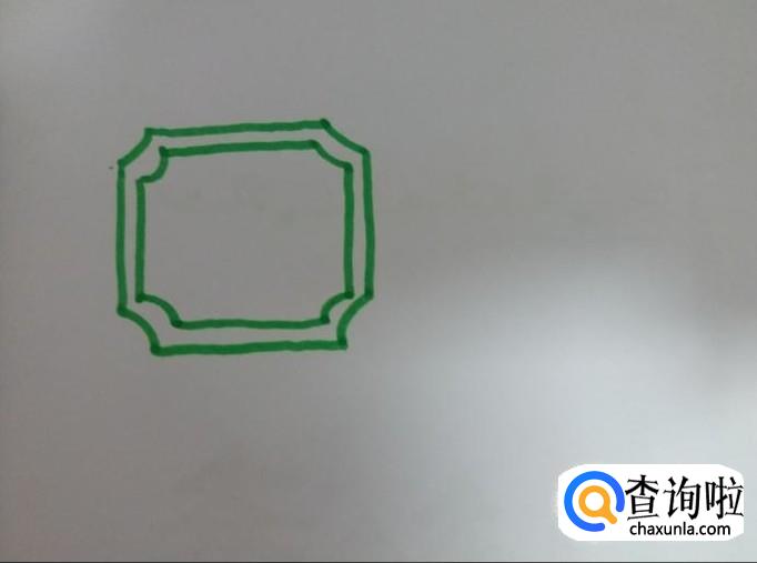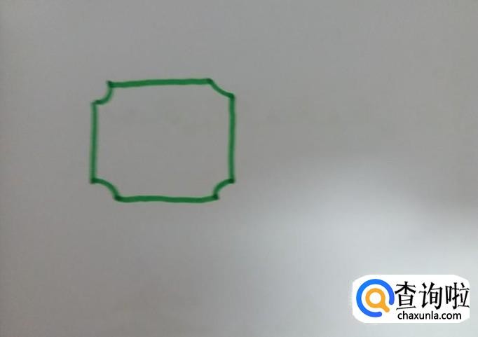 首先画出一个并不完整的方形图案。再在缺失的地方添上弧线。如下图所示。