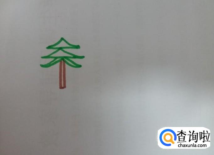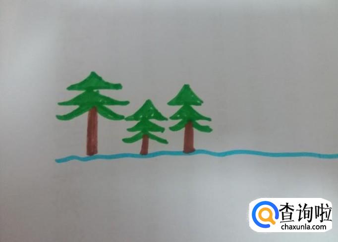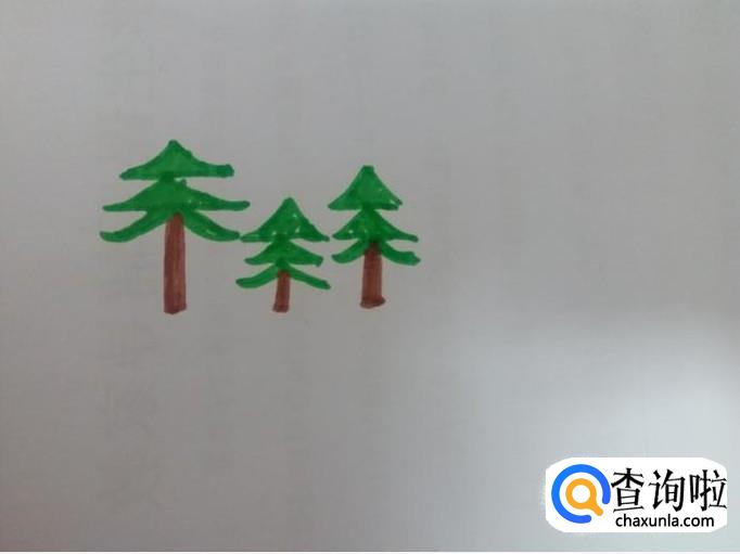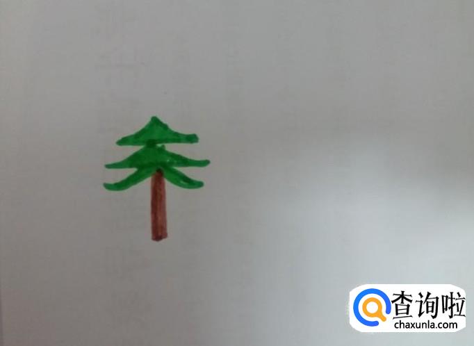 在你要画边框的地方靠左侧,先画出一颗松树,然后将颜色填充进去。