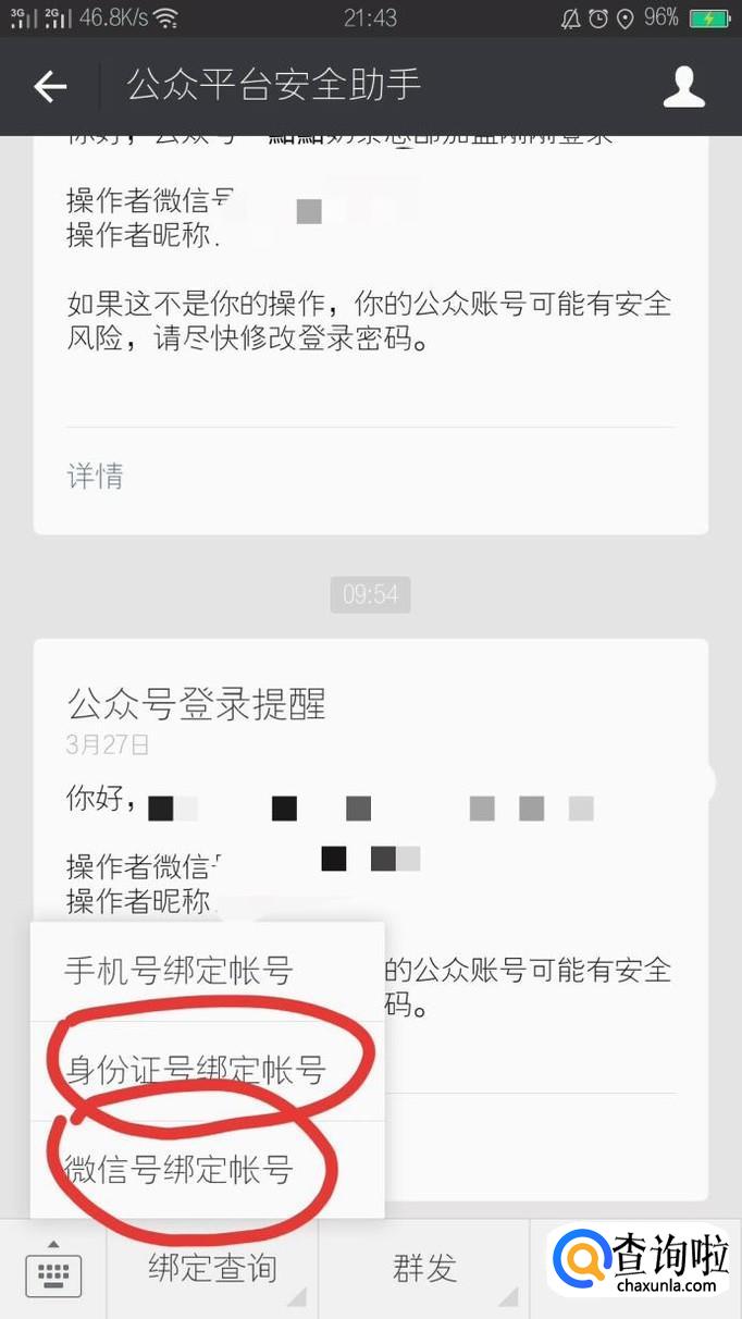 输入个人信息就可以查询微信号及身份证绑定的公众号了。