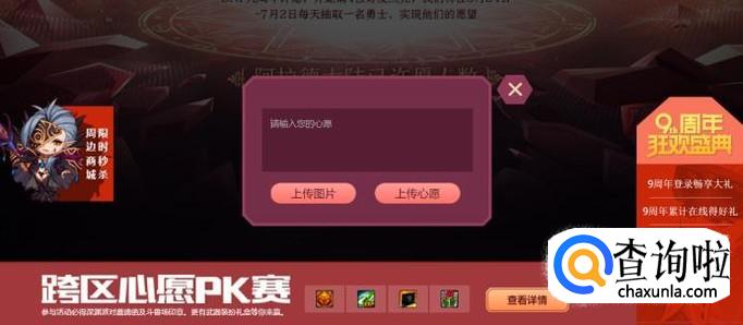点击这个按钮后,系统会弹出让我登录和绑定大区角色的提示框,我们一一照做就可以啦,然后我们就可以许愿啦。