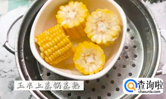 接着,把玉米切成段,放进蒸锅中蒸熟。