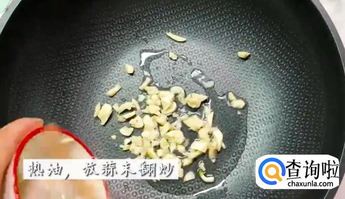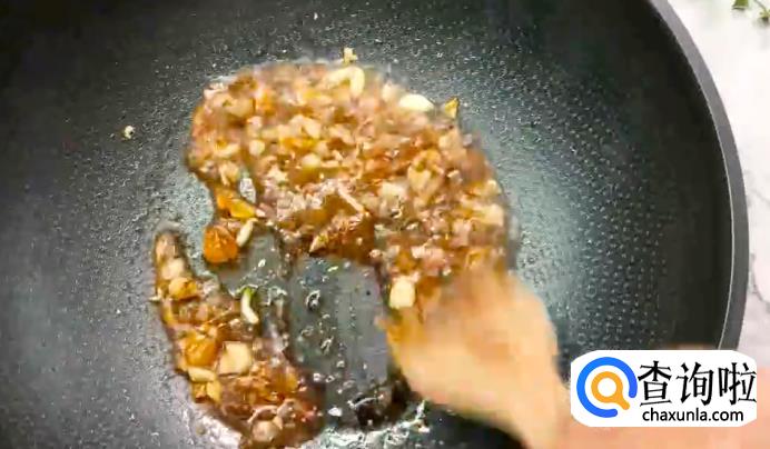将炒锅热好下油,油热后放入蒜末,不断翻炒,再加入蒸鱼䜴油、生抽和盐,再加适量清水煮沸。