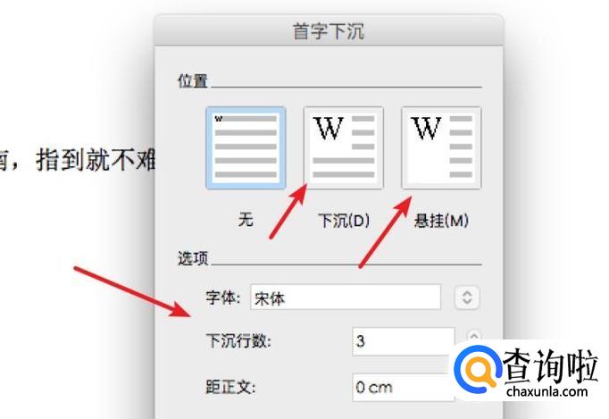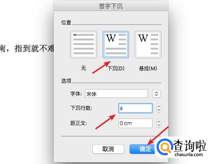 我们可以选择‘下沉’选项,然后设置下沉行数为6