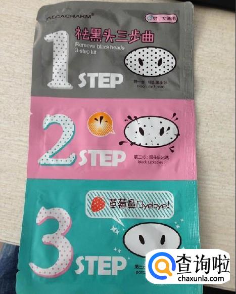 HOLIKA 猪鼻贴去黑头粉刺三部曲,是韩国的一款撕拉式去黑头产品,这个贴膜,需要分三个步骤来去除黑头:1.涂抹黑头导出液;2.粘贴撕拉贴膜;3.敷修护面膜。三个步骤全部做完需要一小时,适合每周用一次。