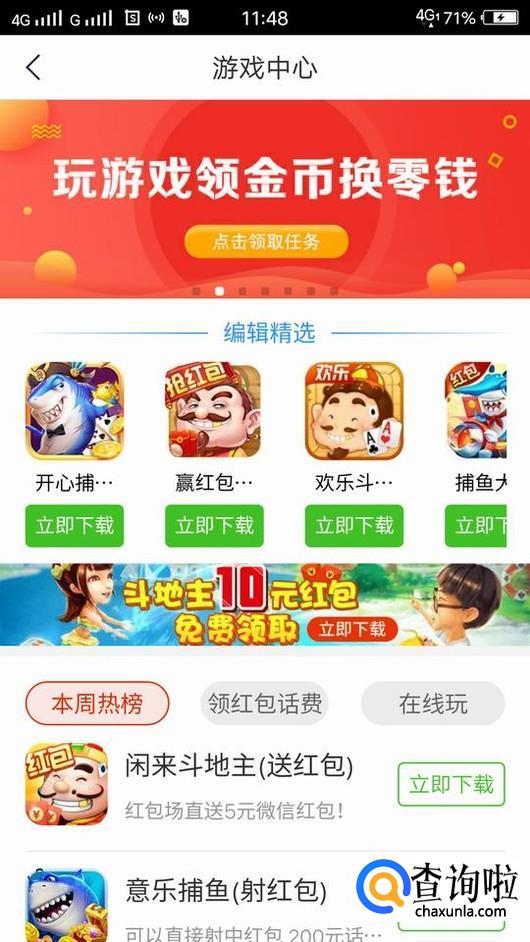 在游戏中心里面,我们可以点击下载感兴趣的游戏,建议玩那些有红包的游戏哦!