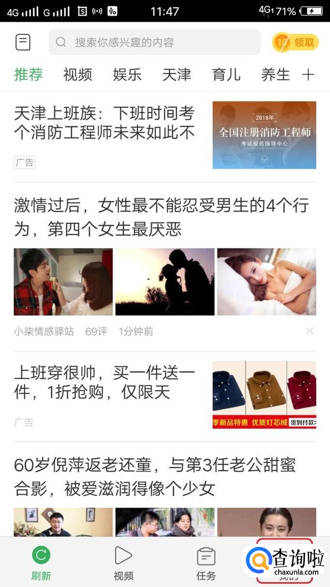 首先,我们需要在手机上安装“趣头条”app,安装之后打开,点击右下角“我的”。