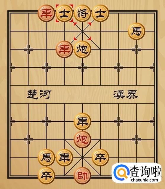 红方先走车七进六将军,黑方只能士5退4阻挡。