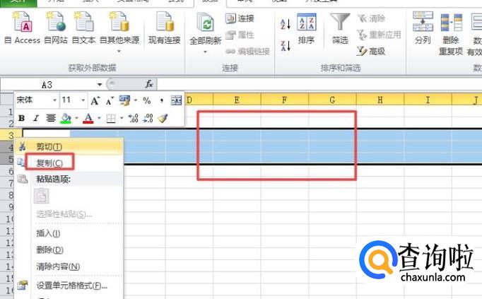 插入多行也是比较简单的,我们选中三行,然后右击选择复制;